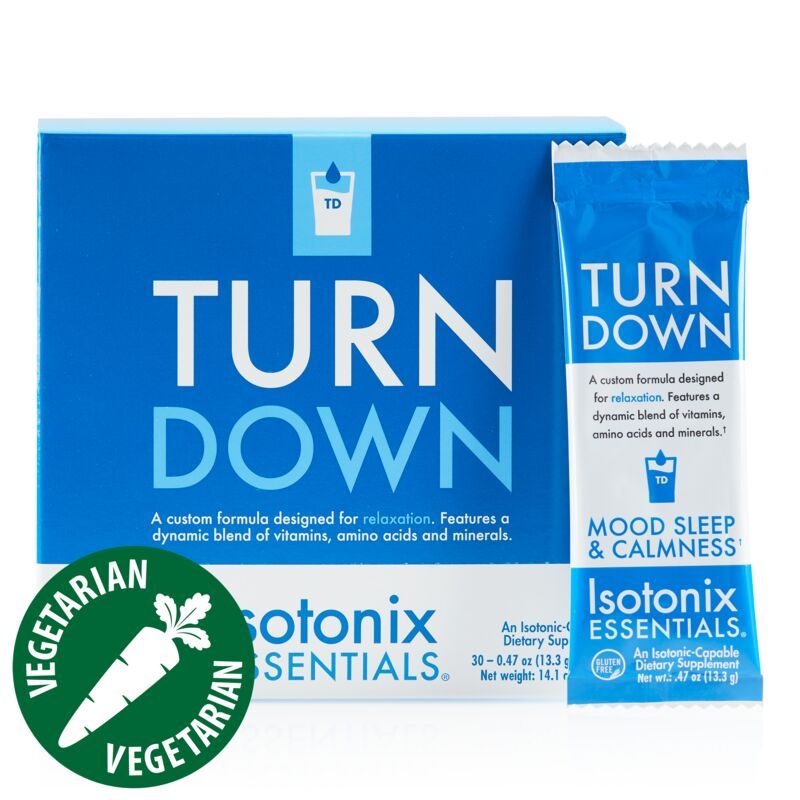 Designed for relaxation, nutraMetrix Isotonix Essentials® Turn Down features a custom blend of vitamins, amino acids and minerals all in one easy-to-use packet. The formula contains effective key ingredients to help you quiet down your body, promote mental clarity, control mental tension and support healthy sleep quality.*